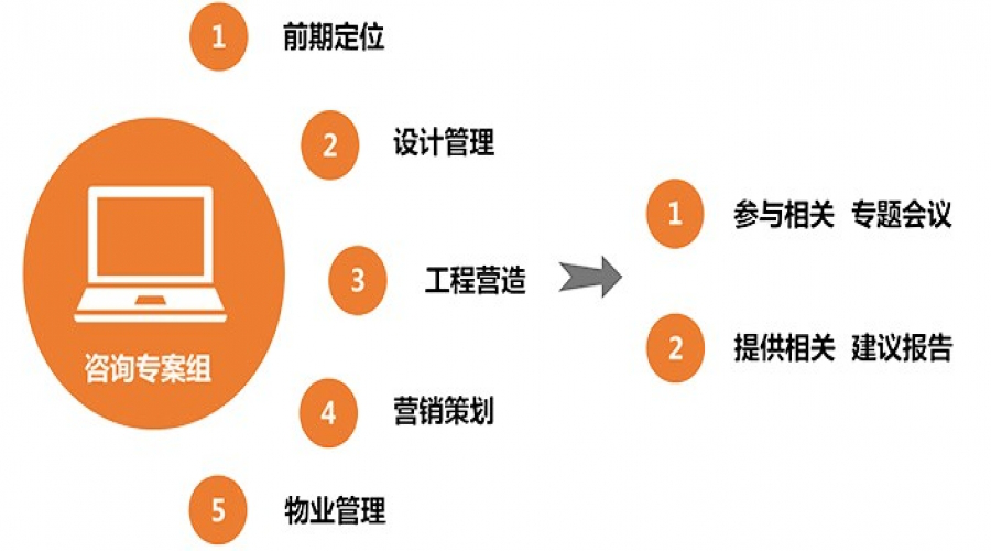 凭借着多年的管理经验,为合作方提供包括前期产品定位、设计管理咨询、工程营造咨询、全程营销策划和物业管理专项顾问咨询服务。