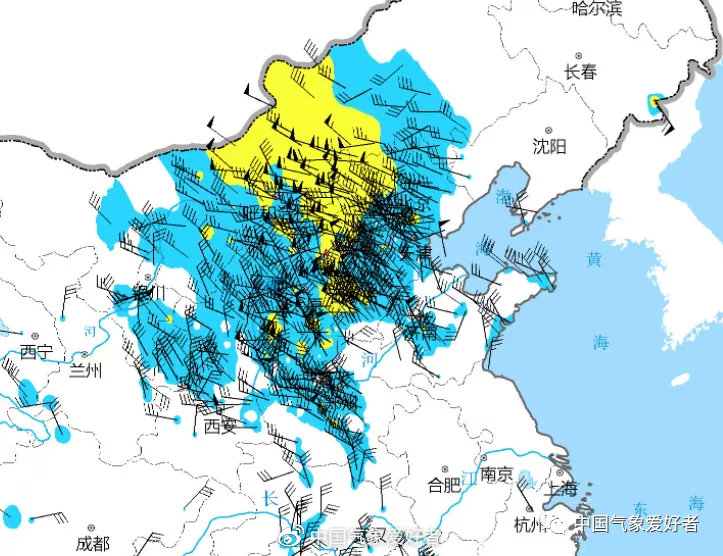11月20日晚间起,寒潮开始大举南下。阵风监测显示,6级以上的风标从昨夜起就迅速扩大,铺满内蒙古西部草原后,延伸到山西和京津冀;而凌晨起,8级以上的大风区也开始出现。在狂风呼啸中,北京甚至出现了一些沙尘。