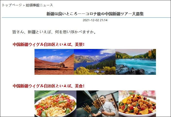 本月2日,中国驻大阪总领事馆发布“新疆是个好地方——疫情后赴中国新疆旅游招募”消息,寻找在疫情后有意赴新疆旅游的日本民众。